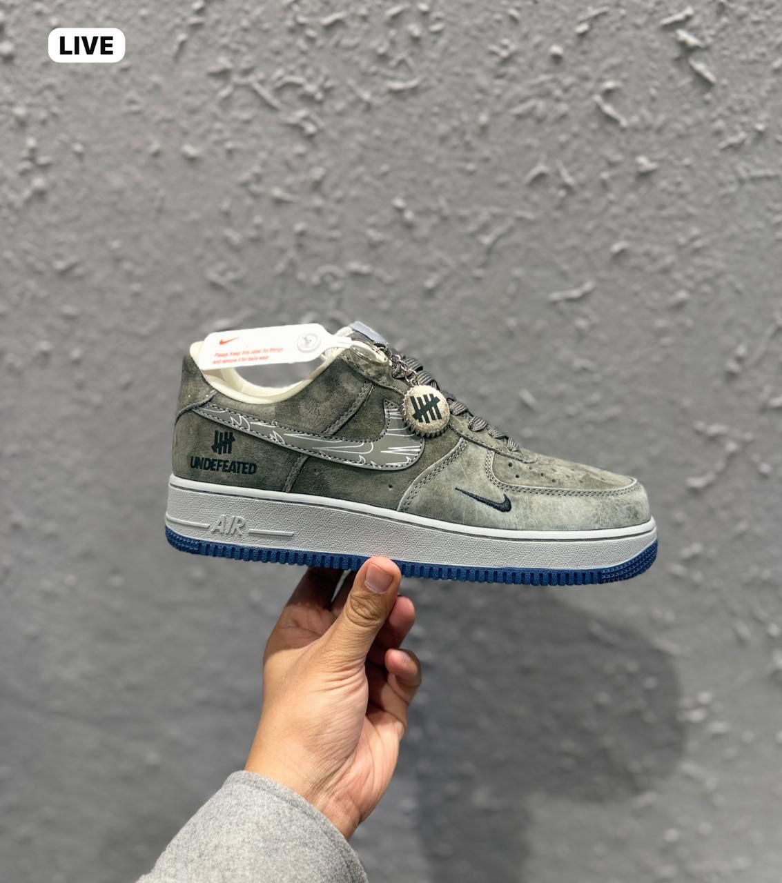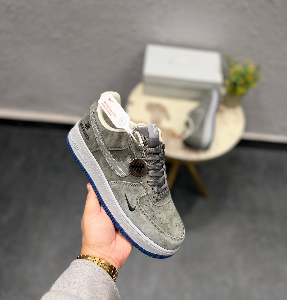 Buy premium Nike Air Force 1 Undefeated Grey Blue with Keychain first copy shoes for men online in India. 7A quality replica with exact same look and feel as originals. COD available all across India. Free shipping on all orders.